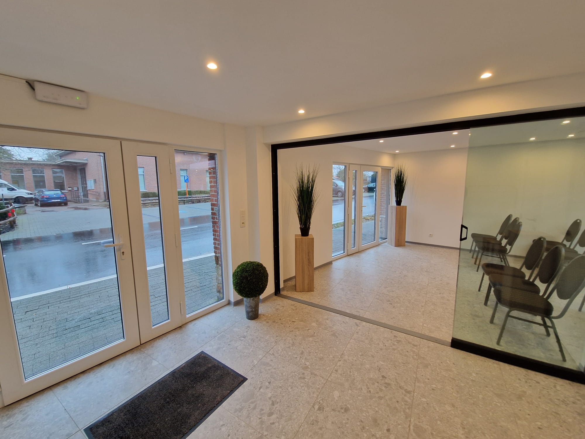De ruimte bestaat uit twee delen die van elkaar gescheiden kunnen worden met een stijlvolle glazen wand. Dit biedt de flexibiliteit om zowel kleinere als grotere bijeenkomsten optimaal te organiseren.